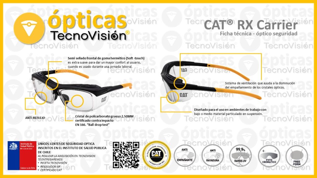 TecnoVisión entrega una garantía de un año por fatiga de material o falla de fabrica. Somos el único representante de CAT para lentes de seguridad ópticos en la región de Coquimbo.