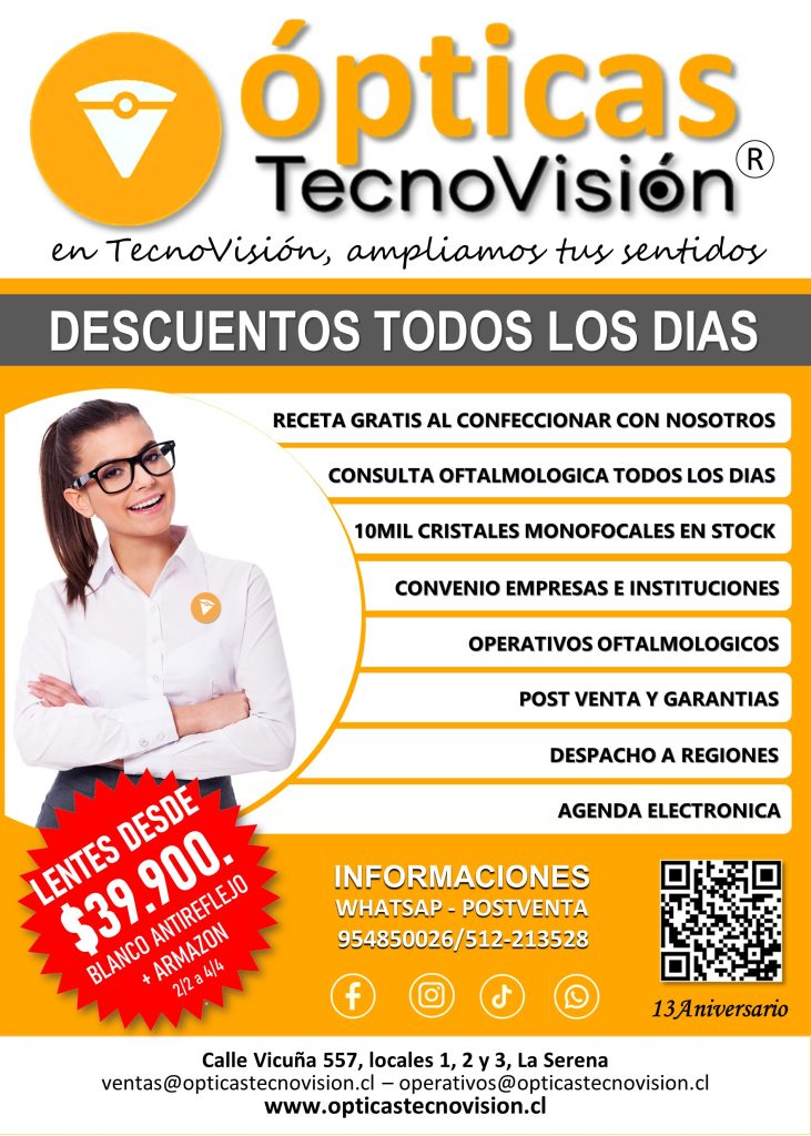Visítanos en cualquiera de nuestras Ópticas TecnoVisión, también realizamos envío a regiones sin costo.